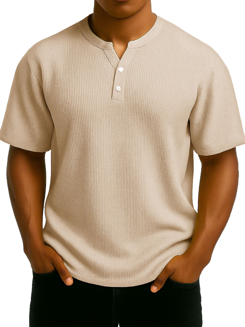 Men's Daily Casual Wrinkled Fabric Wide Short Sleeve Henley Shirt